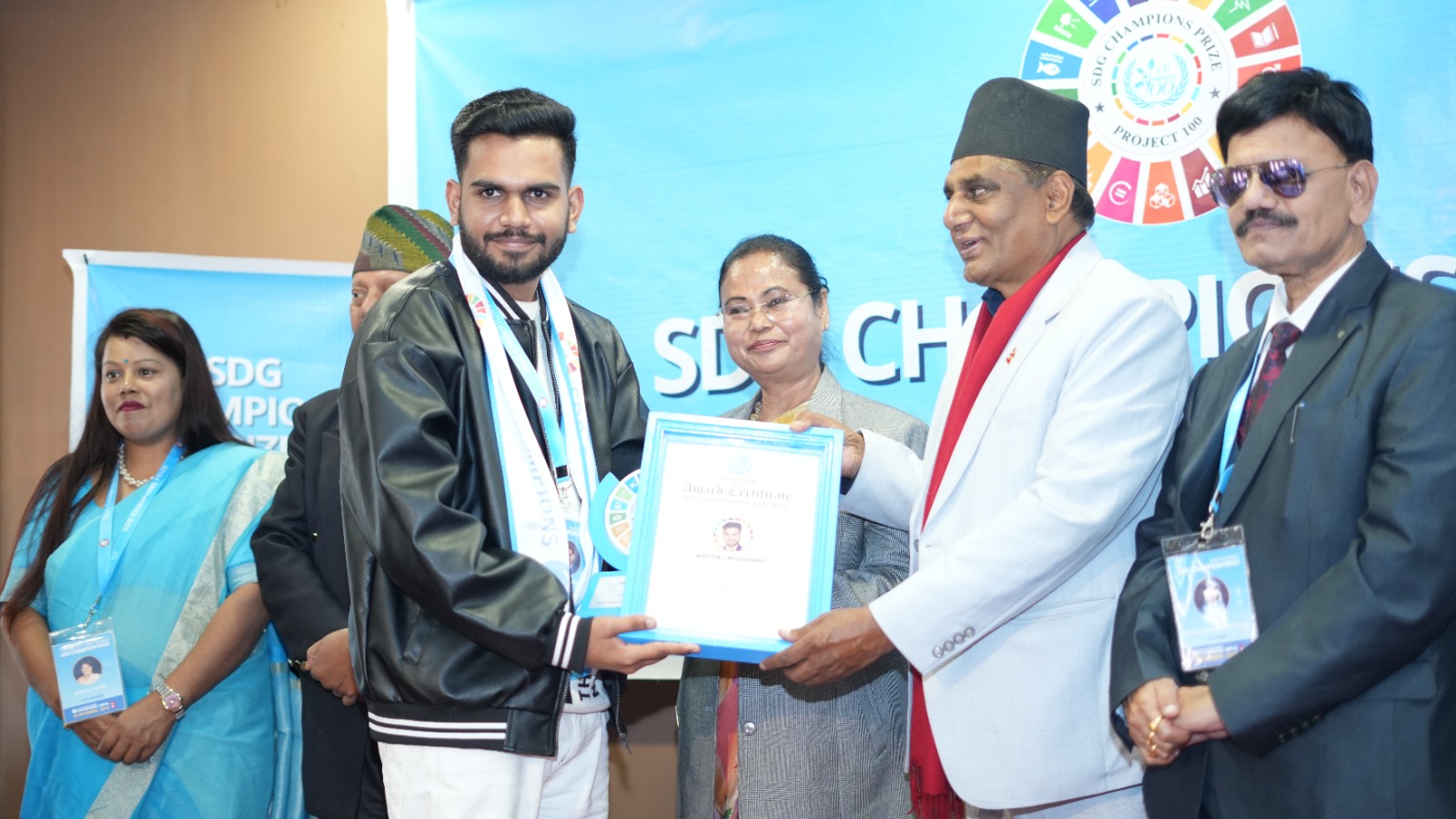 The SDG Champion Prize Ceremony 2025, jointly organized by Human Harmony Nepal, Project 100, and the World Conference Council with the support of the Government of Nepal, recognized Aditya Choudhary of India for his outstanding contributions to SDG Goal 9: Industry, Innovation, and Infrastructure.
